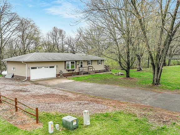 Great location, between Eau Claire, Elk Mound, Menomonie. Home features: Large wrap around deck which has 2 access patio doors. Roof (2014) has a 50 year transferable warranty. living room flooring, refrigerator 2021, washer, well pump, hot water heater, new pex piping though out the home all in 2023. Under the sink water system 2024. The furnace and central air was replaced in 2012. This ranch home has a walk out basement and lots of storage. Spectrum is the internet service. Book your showing!