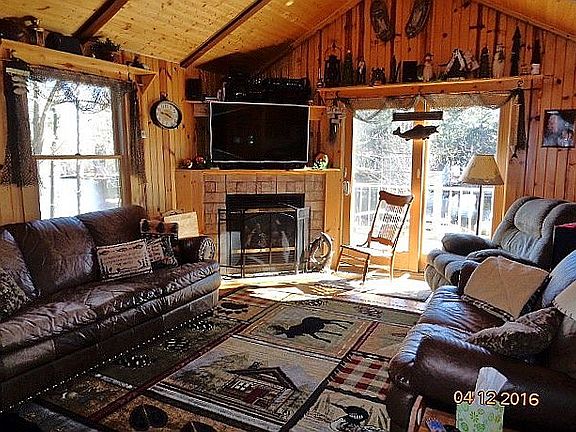 Enjoy sunsets and lake views from this quiet and secluded property. Nestled back on the end of a private road this spacious 3BD/1BA walkout ranch offers gas fireplace, central air, large deck off kitchen, 1st floor master. Lower level has great has great entertaining bar-rec room, 3rd BR, laundry, covered patio facing lake. Appliances, dock included, awesome potting shed and large 2+ car garage. 76` frontage.