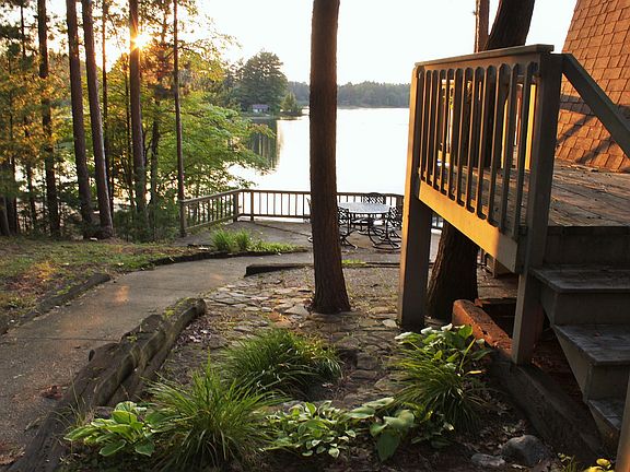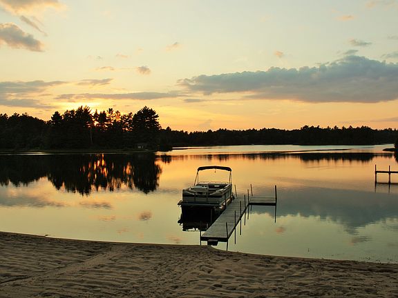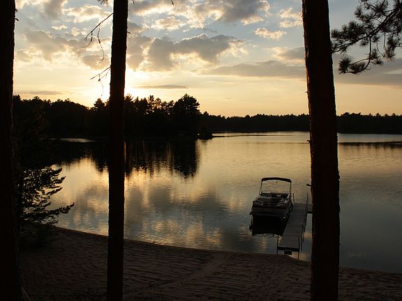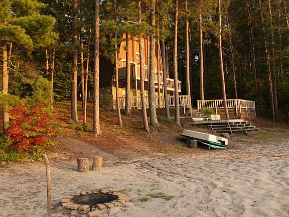 Enjoy 150' of sandy beach at this immaculately clean, well maintained 3 bedroom, 2 bath vacation or year round home. This home was built by a master carpenter with many unique features and a variety of tongue and groove woods including cedar, pine and oak, has a beautiful 3 level winding staircase, 2 gas fireplaces and includes a sauna in the finished basement. Comes with a 3 car garage for all your toys, a 16x40 carport with an additional slab to add more garage space if desired. Electrical updated, 5 new Pella Patio Doors and Windows, new carpet and grouted vinyl tile flooring, new porch, new dock, and a new generator for backup power outages. Water Conditioner and Pressure Tank were moved to inside of home for easy access. Relax at night to a spectacular view of the sunset from this cabin's wraparound deck or from the dock on its sandy beach.