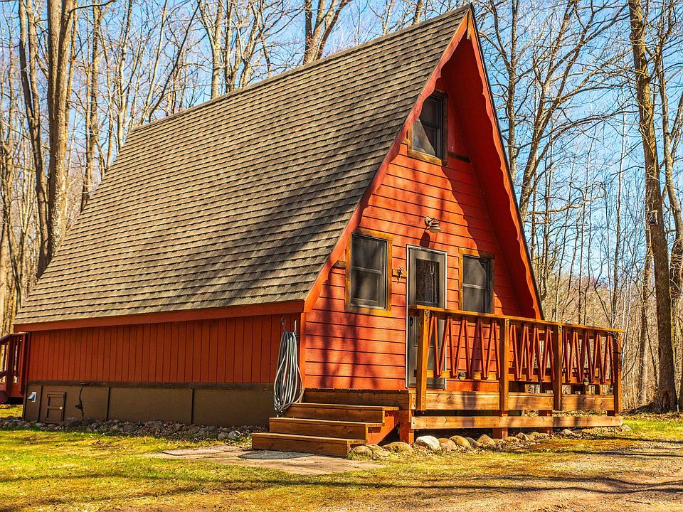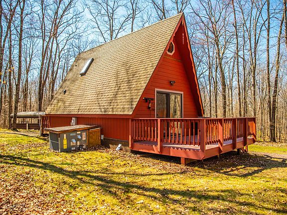 Check out this fantastic A-Frame cabin tucked away in the woods on nearly 12 acres of land! This 1 bedroom, 1 bath cabin is so charming it's hard not to love it when you walk in the doors. Suited for year-round use you'll be able to utilize this cabin for all your outdoor activities no matter the season. The cabin comes fully furnished and is ready for its next owner! Also included in the sale are a steel carport, a small storage shed, and a large 20x10 shed that also has a bunk in the loft for additional sleeping space. Book a showing now so you can see this beautiful cabin and property for yourself.