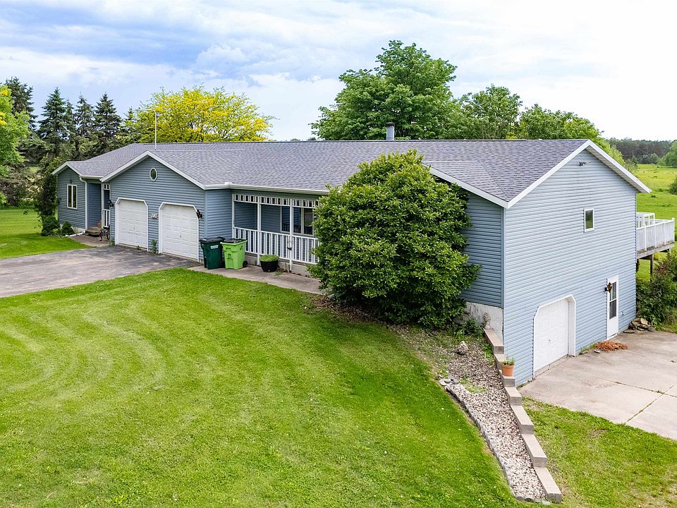 So many opportunities with this unique property! Enjoy serenity on 6.7 acres w/ views of the neighboring horses. Property is adjacent to the 1,300-acre Mukwa Wildlife Area where you can hike, fish, ski and HUNT! Deer, turkey, pheasants, duck & geese. The side-by-side duplex has 3 one-car attached garages, a walk-out basement, newer mechanicals and a brand new roof. Long-term tenant on one side. The owner’s unit has nice upgrades: wood-burning fireplace, hardwood floors and a 4-seasons room. Enjoy add’l rental income, start a hobby farm, or store your toys in the detached 2-car garage w/ workshop and HUGE 30’x60” Quonset hut. Property being sold “as is.” With some work, there is tremendous potential to enjoy a piece of paradise while creating multiple revenue streams.