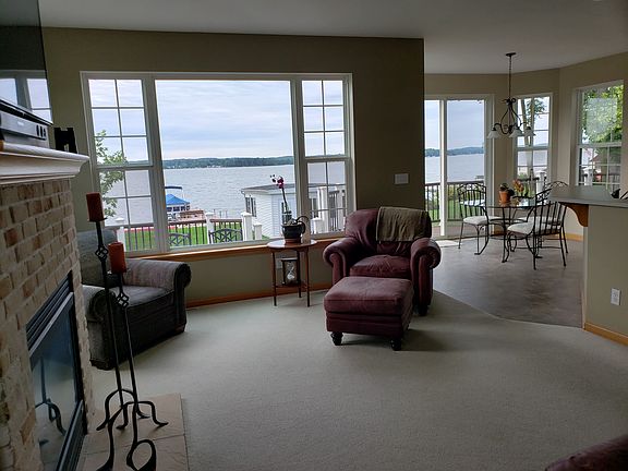 Pewaukee Lake home with finished boat house, pier, lift and pontoon boat. Full unfinished basement with windows (4). New concrete walkway, driveway, and parking area. The parking area is large enough for 4 cars. Large 2 car detached garage with attic for storage.