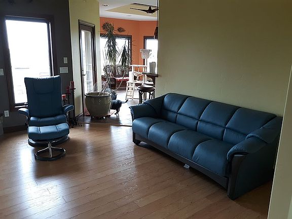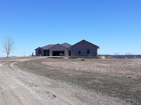 Stylish ranch home set on 11+ acres with expansive southern and eastern views over the Wolf River Valley. Split master suite and guest bedrooms on the main floor with a high efficiency wood burning fireplace in the living room. Spacious kitchen with granite countertops throughout. Fully finished basement includes a wet bar, projector and underfloor heating with its own controlled system. Large 3.5 car attached garage provides access to the basement, and a detached and heated garage offers workshop space. Large elevated concrete patio with granite bi-level table. New roof and gutters on house and garages in 2022.