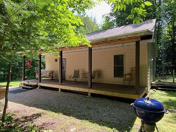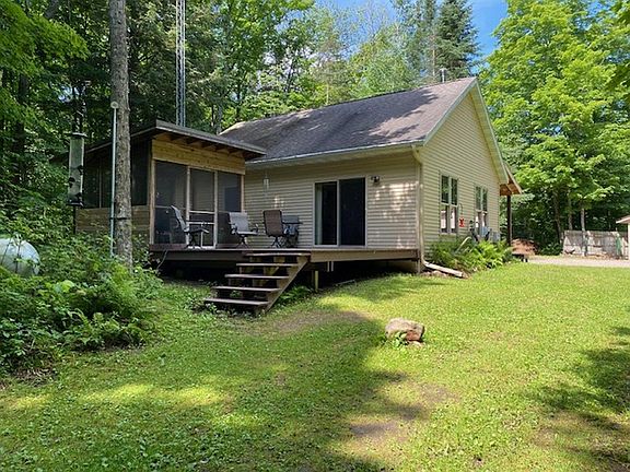 Cabin in the woods near White Lake, Wolf River, and Nicolet-Chequamagon National Forest. 4.88 beautifully wooded acres, (3 lots). This chalet-style home features great views into the forest, a covered deck, and a sun deck with a screen house off the deck. A wood stove warms the great room which looks out into the forest along with a direct vent radiant wall furnace. Store your toys in the 24x28 garage with plenty of room for a workshop. Wooded forest path for your morning wildlife walk.