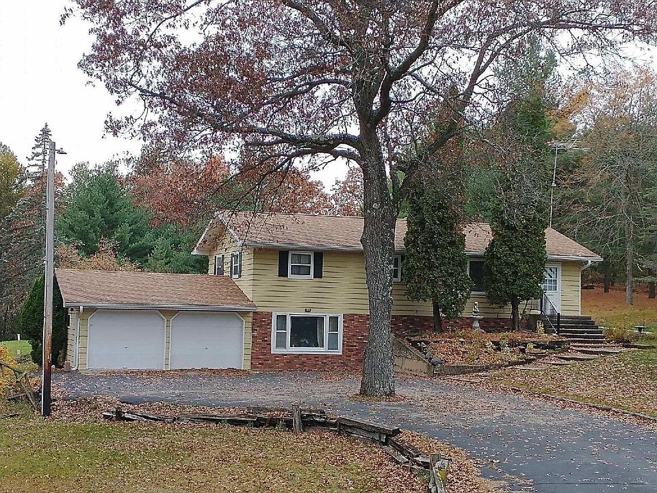 Greatly loved & gently used rural ranch on 11+ peaceful private wooded acres w/ wildlife & scenic views. 1.47 acres fenced yard, pear & apple trees. Rear gate opens to 10 more acres, 16 ft deep spring fed pond (1 acre), pines & garden area. Vacation every day! Newer septic & gutters 2021. Roof 2013, Attached gar (26x21). LL "walk out" offers huge FR w/ WB stove, custom cabinets, utility rm, workroom, bath, bar, 4th bdrm. Light & bright rec rm. Great in-law apartment or teen get away! Lots of storage & unique custom features. Laundry shoot & B-I pantry. Eating area + DR. Rear deck 22x9. Chicken coop 24x10, pheasant cage 12x30. Sold in "as is" condition.