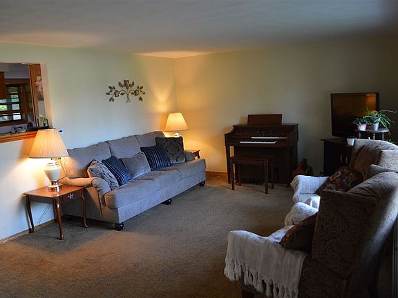 Quad level in established tree lined neighborhood. Kitchen has oak cabinets, Corian countertops and ceramic tile floor. Upper level with 3 bedrooms and full bath with access to master. Lower level features a family room with fireplace additional bedroom and full bath. Basement partially finished with laundry. Municipal water old well has been capped off. Heating & Cooling = Hot Water. Generaor included.