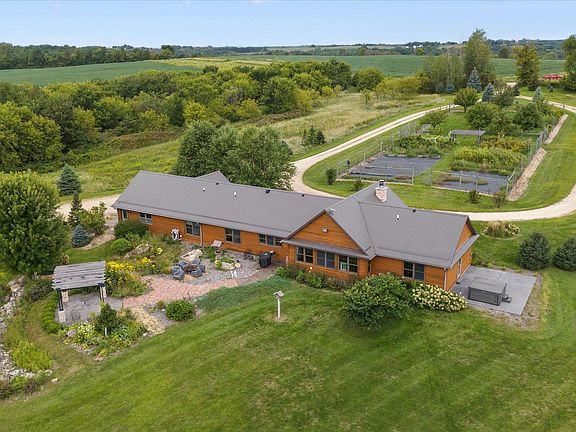 Looking for the perfect 25-acre homestead in Stockholm WI? This immaculate ranch style home sits at the end of a cul-de-sac and is surrounded by 25 acres of open field, professional landscaped flower gardens, abundant vegetable and fruit gardens, a small but high producing orchard AND woods. Built in 2014 this custom built home features an open concept living space with large Andersen Windows, an enormous stone-faced fireplace, beautiful woodwork, vaulted ceilings and NEW kitchen appliances. You will love the simple main level living layout including 3 bedrooms, a spacious mud room, laundry room and walk-in kitchen pantry. The primary suite boasts a large walk-in closet and a full bath with walk in shower and standing soaker tub. Head downstairs to the full-sized basement ready to be finished! The property includes an additional 4 season guest cabin that is perched on the bluff offering beautiful views overlooking the wooded hill. The cabin features a full kitchen, wood burning stove, wrap around deck, a vaulted space for extra sleeping spots AND a full walk-out basement for storage or finish to your liking. The grounds include a 20x42 lean-to, 28x14 shed and 16 x34 Chicken Coop. Grow your own food, raise your chickens and hunt on your land… this property is a homesteader’s dream.