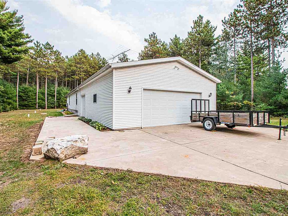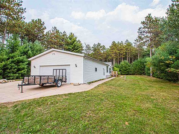 This extremely well kept 1300 sq. ft. turn-key manufactured home features three bedrooms, two full bathrooms, a bright living room with a gas fireplace, eat-in kitchen, and main floor laundry. Bedroom closets have overhead lights; both bathrooms feature higher vanities. Off the kitchen dining area, is a large deck for entertaining and enjoying the beautiful three acre parcel! Home features a large oversized attached garage with outside utility door entry, double and single garage doors and basement access. Partial basement has drywall up and is ready for your finishing touches, Newer roof (2018), new front porch, brand new washer/dryer, and brand new flooring throughout. Home warranty included. Short commute to Nordic Mountain ski hill, biking trails and area lakes. Public hunting grounds are nearby.