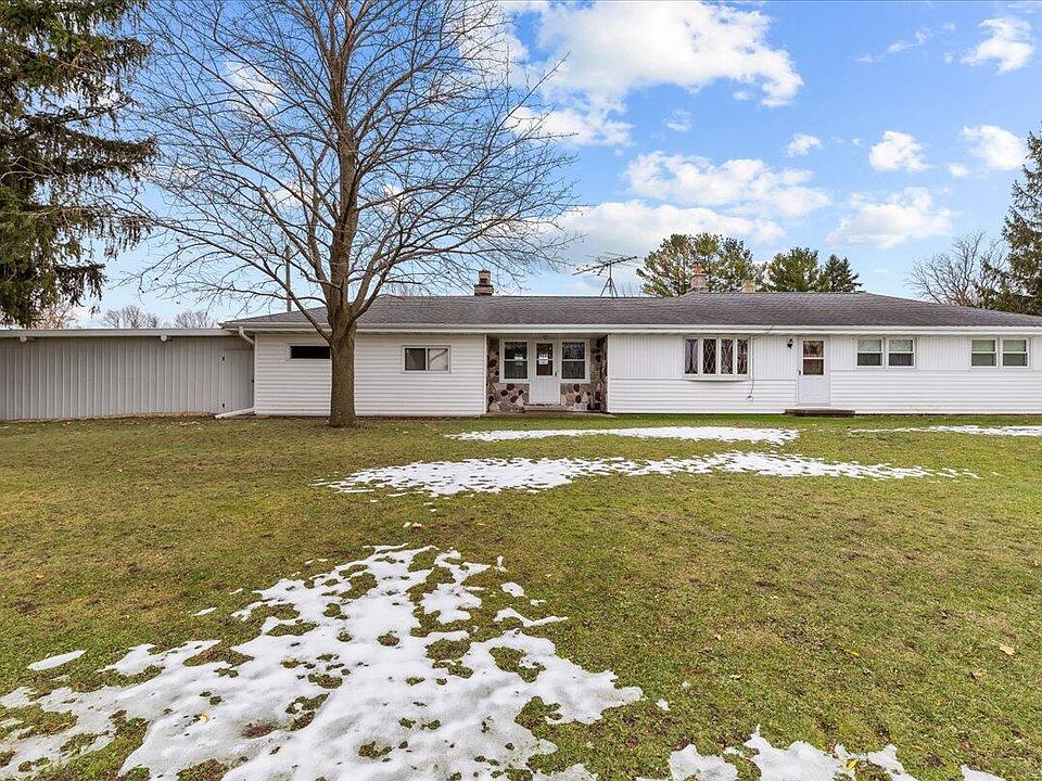 This one owner home has 3 bedrooms, 1 full bath, kitchen, dining room, living room and den with wood burning fireplace all on a large rural corner lot. Home features wood floors under carpet. 1 car attached garage, and 2 car detached garage. Newer windows, 2013, furnace 2018, roof 2012, water heater 2019, cement driveway 2011. Full basement plumbed for additional bath. Stairs from basement lead to attached garage. Home features an additional lot with its own tax # and a shed on property as well. Wood deck off kitchen and concrete patio with pizza oven/built in grill. This is a great home in a small rural community just minutes from amenities.