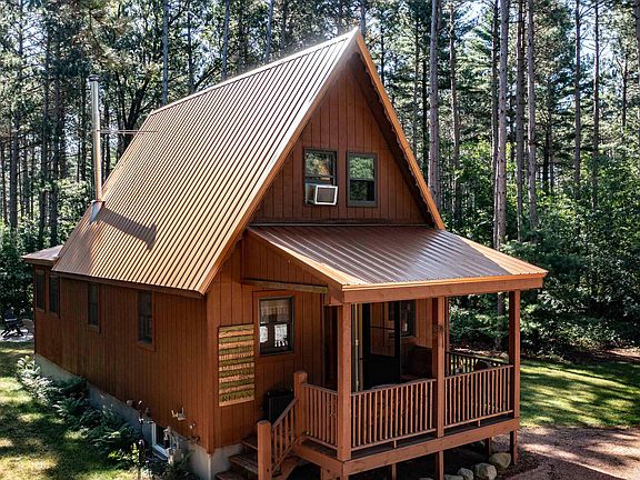 What a great home to get away from it all! Relax on the covered porch or around the firepit and listen to the wind whispering through the towering pines that surround this property. Take a stroll or your golf cart to the shared Fish Lake beach access for exclusive use by association members. If you feel like staying in, this home feels spacious and cozy with the cathedral ceiling, a wood burning free standing stove, skylights to keep things bright, a loft area (Bedroom 1), living rooms on the main floor and in the finished lower level where you will also find the 2nd bedroom, a full bath and the laundry area. Storage will not be an issue with the 30'X24' detached garage and storage shed. So much more to experience here. Call today for your private showing!