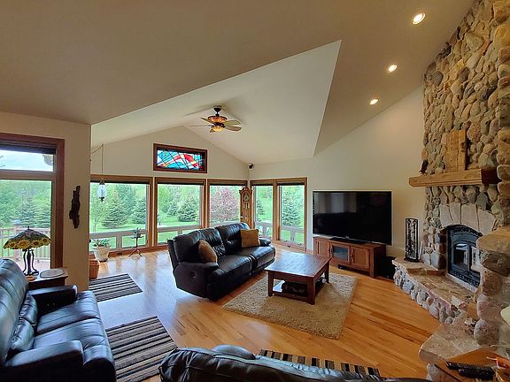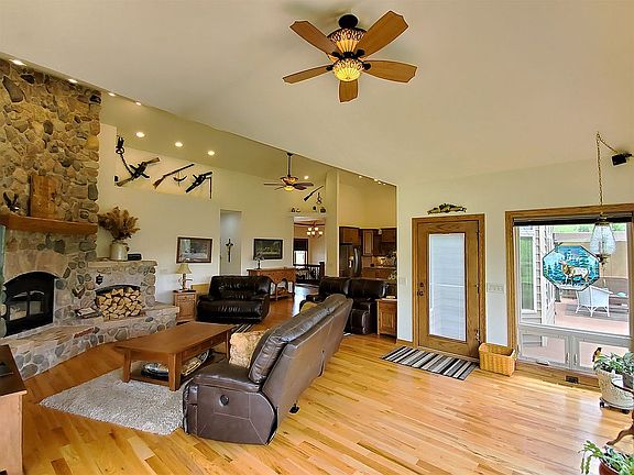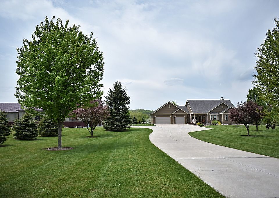 Offering a serene location sprawling over 14.28 acres w/gorgeous backdrop, this immaculate custom home makes for an ideal live-in retreat. Enjoy the chef's kitchen w/island & quartz counters; pot filler; & full array of appliances, or cozy up to the fireplace in the wide open living room w/soaring ceilings & dramatic views to revel in the rich oak hardwoods & bespoke details that make this a truly special home. Spacious master bed boasts trayed ceiling & ensuite w/WIC & luxury shower. Finished lower level w/3rd bedroom, full bath, home office, & abundant storage. Attached 3.5 car GA w/attic walk up & HUGE 48x80 building can house all your toys & equipment. Rear deck walks down to a fire pit & overlooks a scenic backyard rife w/trees & wildlife. Easy commute to MKE & Road America. Must see!
