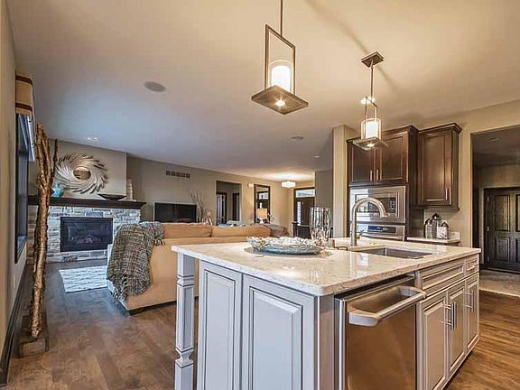 2014 Parade of Homes Winner. Recently constructed ranch with 3 bedrooms, 2 bath, luxurious kitchen with quartz counters and maple hardwood floors. Tiled shower, soaking tub, and dual-sink master bath. Walk-in master closet with California system. Window treatments throughout including black-out shades in all bedrooms. Central vacuum system for house/garage/basement. Full extension/soft-close drawers throughout home. Over-sized 3 & 1/2 car garage. Beautifully landscaped with large outdoor gas fireplace, paved seating, high-end sprinkler system, pergola, natural gas hook-ups and more! Basement ready to be finished; floor plan included, egress window, plumbed for full bath. Radon prevention system. In-wall speakers throughout house. Appliances included.
