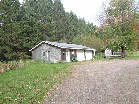 Country living with a 4 bed, 1 bath home with +/-18.75 acres. Kitchen with dining and office area. Living room with access to a four season room. Master bedroom with a walk in closet. Insulated, sheeted 3 car attached garage. Heated, insulated, sheeted 3 car detached garage. 16x12 storage building. Mixed woods with red pines, spruce, poplars, oaks and pasture lands with contour. Aluminum siding on home. The stove, refrigerator, microwave, washer and dryer are included in the sale price.Interior pictures coming soon.