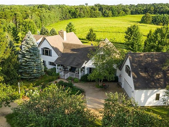 Idyllic, private, large acreage nature preserve with incredible post & beam timberframe home. Highest and best use of this 5 bed 6 bath estate w/ multiple living spaces is Airbnb, event venue, corporate retreat or the perfect escape for a multi-generational family. Land has been chemical free and could be easily certified organic for niche hobby farm development. Extensive manicured trail system gives total accessibility to the entire acreage. The farmstead includes extensive manicured gardens & flowerbeds filled with hundreds of varieties of perennials, fruit trees and open green space. New pole building constructed in 2016. The wildflower meadow is the perfect natural backdrop for wedding photos and changes weekly. Line of site views of Lake Pepin make this bluff property one of a kind.