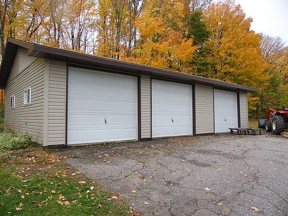 Tree lined drive leads you into your private paradise. 40 acres wooded with an extra large pond... for swimming paddle boating or a great area on the side for duck hunting. The 40 acres has trails throughout the woods and some of the best deer and grouse hunting around. The home is extremely well kept, covered with a brand new roof. Lower level has a great family room, with bar and gas fireplace and a sunroom that is terrific. Patio doors off dining lead to an oversized deck to enjoy summer cookouts and watch the wildlife play. There is a 2 car attached garage, 3 car detached and a machine shed for toys or equipment. Come take a look