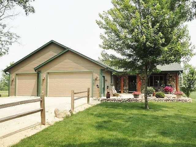 Quality throughout this well-built home w/an Open concept living rm &bright sunny Kitchen.kitchen has plenty of counter &cabinet space plus Center Island overlooking spacious living.Patio door off the dining area leading to a large deck w/lots of wildlife &breath taking view of the country side.LG 3 car att.gar.&30 X 34 detach. building/garage.Lower level has been partly finished w/fieldstone fireplace,log walls,work shop &large family rm.Seller has lake access off of Spearhead.Pride of ownership throughout
