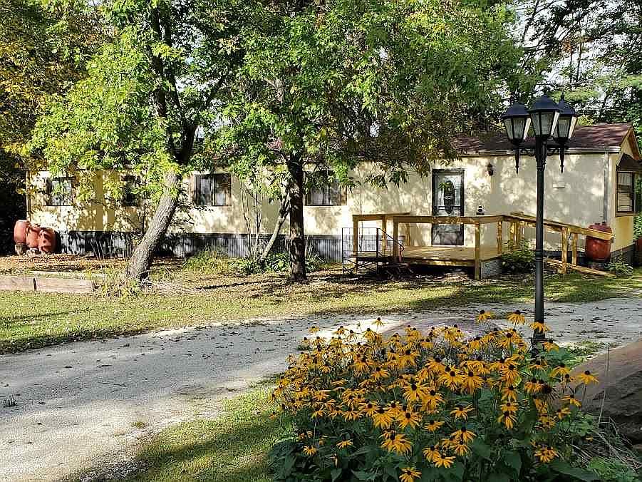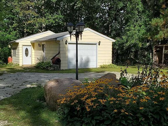 Vacation Home or Primary Residence: Either One offers Never Ending Fun with 190 FT (PAO) of LITTLE WOLF FRONTAGE in this updated 2 BDRM, 1 Bath, 1 Car HEATED Garage w/a BONUS STUDIO w/In-Floor Radiant Heat. Gorgeous RIVER views w/mature treed 1 Acre lot (PAO) where you can enjoy tubing/canoeing and experience amazing wildlife (fish, deer, eagle + more) TONS OF IMPROVEMENTS! 2 New Boiler Furnaces (1 House/1 Garage), Hot Water Heater (Endless Hot Water), Well Pump & Pressure Tank, Mound System, Sheds, Front/Back Decks. Excellent peaceful location!