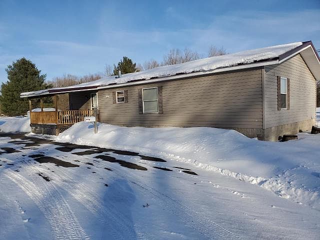 Live Your Dream-Move to the Country! This comfortable, maintenance free, 3 bedroom, 2 bath manufactured home is located near the Nicolet National Forest, The beautiful Wolf River and trails galore! The home has a metal roof that is approximately 7 years old. Large 2+ car garage with 3 doors for drive through access, 2 door openers and extra storage and 220 electrical service. Blacktop circular driveway provides ample parking. Covered front porch and a large rear deck with a retractable awning. The home features an entry/laundry room, galley kitchen (includes gas range, New Refrigerator and built-in microwave), large living room and dining area. The split floor plan provides privacy with a large master suite on the north end and two bedrooms and full bath on the south end of the home. All bedrooms have walk in closets. The yard provides ample room for play, a garden and or flower gardens. The wildlife love this location and I'm sure you will too.