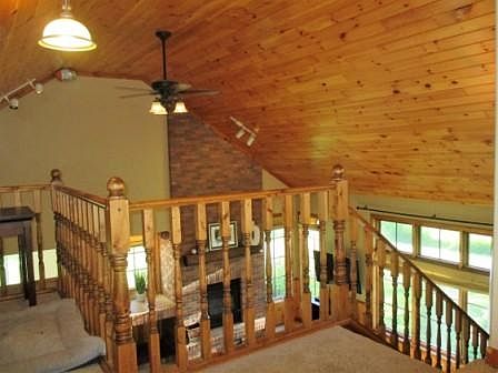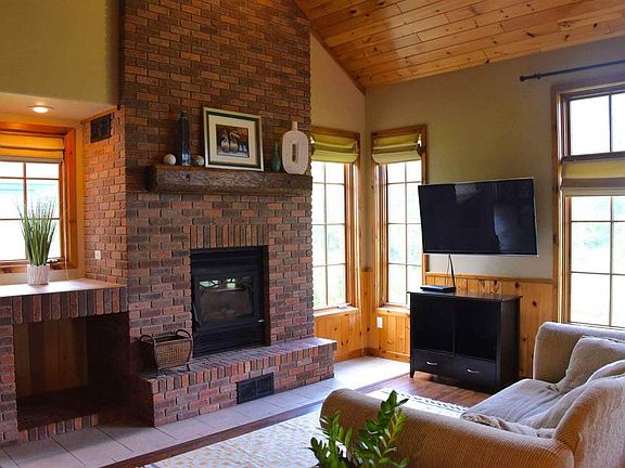 This would make someone very happy!! 45 acres of great country living and a fantastic house. House was built by a contractor for his own home,the next family added more room and many other upgrades. Wonderful grand custom fireplace, tongue and grove ceilings are part of the open concept. From the front porch into a large foyer you'll feel warm & welcome. Very nice laminate has a very good underlayment is warm and quiet.Big bedroom on the main floor with a patio door, bathroom with large showerDining room full of windows would make a wonderful entertainment area.Kitchen has good working area and great knotty alder cabinets.There is a 2nd entry door on the front which could lead into a home based business. This room could also be a family room,hobby room or maybe some more sleeping area. Up the open stairway you'll find a nice loft area perfect for hanging out or going out to the 2nd story deck to overlook some of your land and the pond. Good size bath and 2 bedrooms on this level also.The front of house could also be added on to, one could easily have attached garage in front.Detatched garage although 1 car is large and has a ton of storage and is insulated/ heated. Another building is a bunk house and sleeps 3. Land consists of 16A field and 29A wooded.Land is L shaped with the house sitting on 25 acres and an additional 20 acres connected to the northwest which is very wooded and has a creek running through it.Wldlife is very abundaent out here. This creek flows into the back yard of house and there is a small stream feed pond. Plenty of open land for animals also.