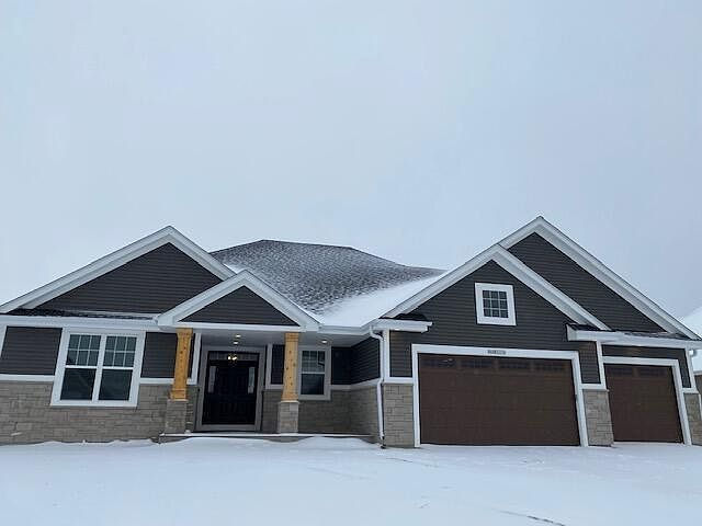 New construction in scenic Woodleaf Reserve - Pinewood ELITE ranch design. Large 3+ car garage space. Able to view or select ALL interior remaining finishes in Kaerek design center. Kitchen cabinets per plan to be serenity white, all trim to be painted white. All flooring, countertops, paint colors, hardware backsplash able to be selected. Under construction in the framing stage/Fall completion. 2X6 exterior walls/16IOC/with 7/16OSB sheathing,. Lower level includes 50 gallon rheum water heater, high efficiency York furnace, future bathroom plumbed, 200 amp electrical service, active radon mitigation system. No concrete driveway or landscaping included in purchase price. Design able to be walkthru in Brookfield with approval.