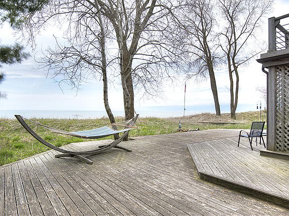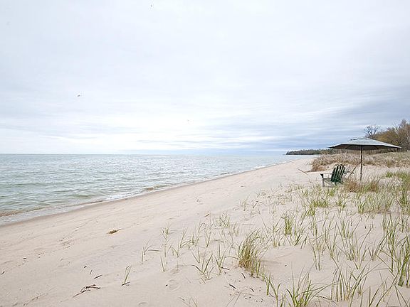 Your place at the shore! Situated on 1.4 acres & 125 ft of coveted sandy Lake Michigan beach, this gorgeous home is loaded with amenities. Expansive windows offer sweeping views of lake & forest. Gathering room w/ fireplace flows to gourmet kitchen featuring stainless steel & Cambria counters. MB suite has private balcony overlooking the lake. Heated workshop w/ 2nd flr bunk house!Large deck, skylights, in-floor radiant heat, hot tub, yard sprinkler system & more. Near pristine Amsterdam Park, quaint towns, marinas,& golf, just 2 hrs from Chicago. Live the lake lifestyle!