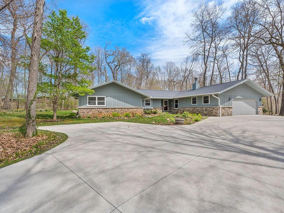 Set on a generous corner lot, this 3BR/2.5BA ranch-style home is a haven for nature lovers, surrounded by serene, wooded landscapes. Picture yourself in the inviting 4-season sunroom, where your living space & the great outdoors seamlessly blends. The open-concept design creates a warm & welcoming atmosphere, with a cozy stone fireplace and well-appointed dining & kitchen area with hardwood floors. The home's layout prioritizes convenience & privacy with 2 bedrooms featuring ensuite baths. Additional highlights include an attached 2.5-car garage, a main floor laundry room & guest half bath. The finished rec room is an ideal space to unwind or host gatherings. And when you're ready to embrace the outdoors, you'll appreciate the 2 decks where you can soak in the beauty of nature year-round.