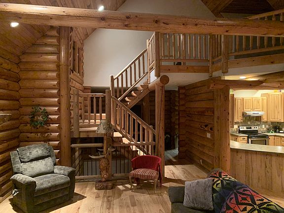OPEN HOUSE 2-6 PM SUBDAY FEB. 9TH Dreaming of a secluded country home nestled in the woods? This beautiful half log home is the perfect house for you! Located on a quiet, dead end road off the highway, just 10 minutes outside of New London on nearly 2.5 acres. This 4-5 bedroom and 3 bath home is move in ready, yet still has room to be customized to your final touches by finishing the bonus room above the garage and the large workshop in the basement. Walking up to the home you see a grand stone entryway with a dreamy wrap around porch, with access to the main living space as well as the master bedroom. This home is over 5,000 square feet (3,500 finished and 1,800 unfinished) and features an open living/dining/kitchen with a loft space. You are going to want to see this gorgeous home, it wont last on the market long.. contact us today!