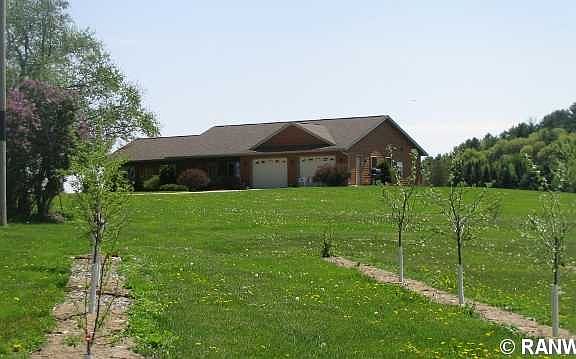 The perfect combination...about a mile from Osseo, this one level, barrier free home boasts beautiful views, wildlife out your back door and not a neighbor in site. Situated on 6.8 acres this home offers hickory cabinetry, 3 panel doors, lg. master bedr w/att. master ba and walk in closet, large 4 season room w/lg. windows to enjoy the views...this leads to your 31' concrete patio w/pergola. Home has in floor heat in home and finished garage w/ 1/2 ba. Newly planted fruit tress and more!
