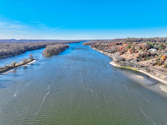 Discover a truly one-of-a-kind handcrafted retreat overlooking the Mississippi River. Designed and built by the seller, a retired architect, this timeless 4-bedroom home is filled with character, intention, and sweeping river views from nearly every angle. An open layout and expansive windows frame the home. Start your mornings on the large covered porch/deck, coffee in hand, watching eagles soar overhead. With additional side and front decks, you'll enjoy oodles of outdoor living space—perfect for relaxing, entertaining, or simply taking in the breathtaking views. Inside, the spacious kitchen is built for gatherings, featuring Cambria countertops, ample cabinetry, and a custom built-in table with seating for up to 12. The adjoining great room offers a beautiful stone fireplace, making this the ultimate space for hosting family and friends. Stay warm and cozy all year with both forced air heat and a wood stove. The lower level surprises with a second wood-burning fireplace in a large flex room that can function as a bedroom, recreation room, or inviting guest suite. A generous storage room and a workshop connected to the garage provide exceptional space for hobbies, projects, and organization. Homes like this rarely come along—thoughtfully crafted, beautifully maintained, and set on one of the most stunning stretches of the Mississippi River. This property is truly a must see!