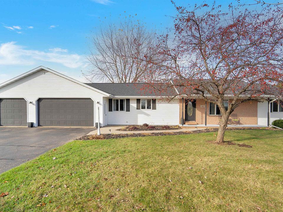 Perfectly nestled on large lot just minutes outside of Appleton is this charming ranch home that gives you room to roam! Step inside an find an open concept with large living spaces and tons of room for entertaining! A split bedroom allows for a private primary suite with attached bath and two additional bedrooms and second full bath on the other side of the home! Tons of updates with new plank flooring, lighting, doors, roof, furnace, and a/c (per seller)! The lower level features extra living space with a rec room, game area, and office (ceiling is not finished), and has stairs to the OVERSIZED deep garage that measures 30x32! Enjoy beautiful sunsets from your back patio overlooking the tree-lined backyard that brings both beauty and privacy to this Mother Nature’s paradise!