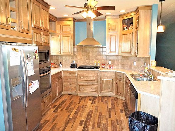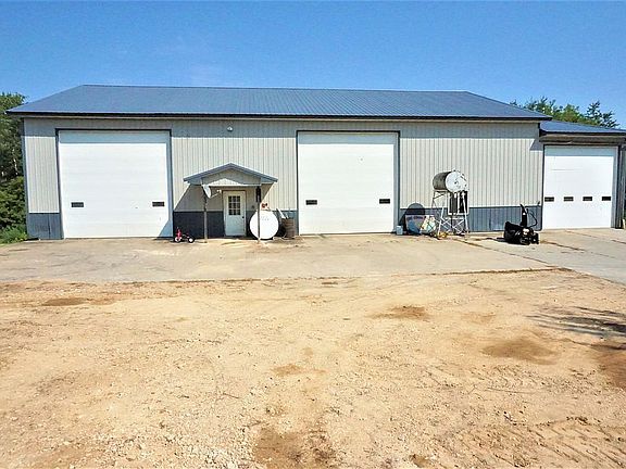 Must see this shop! Plus 5 bedroom - 3 bath walk-out rambler home on 6 acres! Shop is 80' x 60' plus 16' enclosed lean-to. Has 200-amp service, heated floors, floor drains, ¾ bath, water lines, air lines, 18' tall walls and 2 16' x 16' overhead doors. Detached garage is 24 x 24. Home has main floor laundry, 3 bedrooms and 2 baths. Lower level has 2 bedrooms and full bath plus much more area to finish. Master suit has walk-in closet and ¾ bath. Stainless steel appliances. Walk-in pantry. 9' walls on main level. High efficiency furnace with central air plus in-floor heat in lower level.
