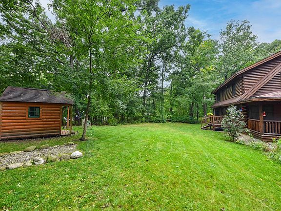 Escape to the charm of log home living with this beautifully updated property offering both rustic warmth & modern comfort. Peaceful wooded lot with Lake Sinissippi access, this home invites you to breathe in the fresh air & enjoy nature. Open-concept design with soaring ceilings, natural fireplace, & a versatile loft area perfect for a reading nook, home office, or extra sleeping space. The updated kitchen & bathrooms blend style with function. The spacious rec room in the basement is great for games, movie nights, or hosting guests. Step outside to the impressive wraparound porch, where mornings are made for coffee, gathering with friends, or quiet sunsets. Your days can be filled with swimming, boating, fishing, or simply relaxing by the water.
