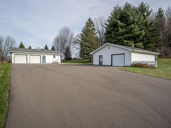 Fantastic location! This property is located in desirable Timber Ridge development. 2.24 acres! The house is located close to schools, shopping and hospital. Only minutes from I-94 for easy commute! Just east of the Menomonie city limits. The property has large yard & mature trees. This is a single story home with main floor laundry, master suite with private bath and walk-in-closet. Two wood burning fireplaces to keep you toasty warm all winter! Main floor family room could be used as formal dining room. The lower level is finished - family room, rec room, bathroom & storage. Attached 2 car garage & detached garage.