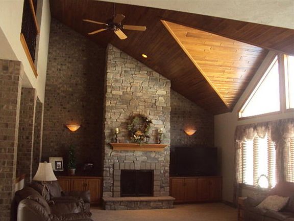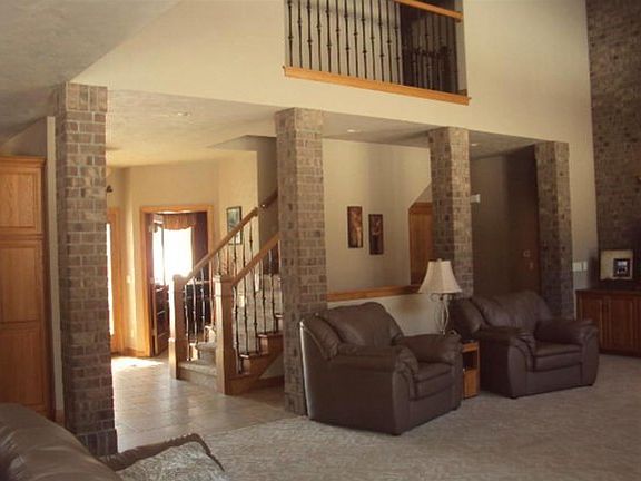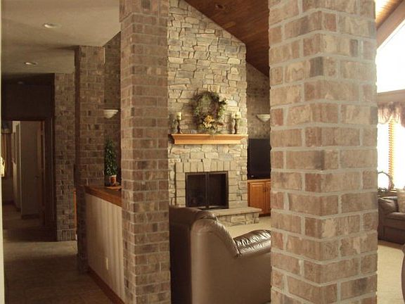Custom built former Parade home, set on 1 acre with a wooded backdrop. Enjoy this open concept 1 1/2 story home with beautiful stone and brickwork on both exterior and interior of home. Great room features gas fireplace, 18 ft. vaulted ceiling finished with select ash tongue and groove. Custom cabinets throughout with Cambria countertops in kitchen. 1st floor office, laundry and master suite, with air tub, dual vanities, shower, his and her walk-in closets. Lower level is ready for entertaining. Home theatre is open to bar and pool table area, with radiant in floor heating. Sound system, central vac, 3 zone heating and cooling system, plastered garage with stairway to basement are just a few of the many extras this home has to offer. Call today for your private showing.