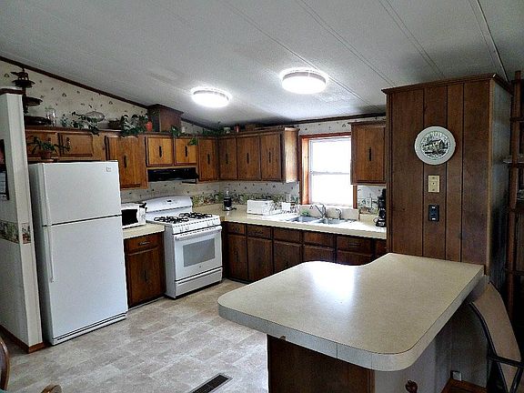 Private setting for this rural area home with 3 bedrooms and 2 full baths that sits on 1 acre of land between Antigo and Neva. It has a fireplace in the living room, metal roof, ceiling fans. This manufactured home is on a full basement that contains the furnace and hot water heater. Also, drilled well, mound system and a one car detached garage.