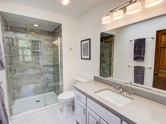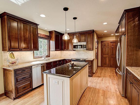 Step inside to a delightful and well appointed home! Impressive kitchen with center island, granite counters, tiled back splash and stainless appliances. Extra touches like French Doors, crown molding, large bay windows and hardwood floors finish off the main level. Upstairs you will find gorgeous bathrooms! Newly updated spa like retreats. Vaulted ceiling and walk in closet in the Master. Ideal finished lower level with workout room, office and rec room! So Much To Love!
