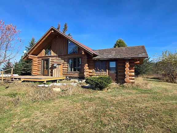 Full log home northeast of the city of Antigo located on a beautiful 20 acre lot offering portions of hardwoods and open area, and located on a very quiet road. This full log home was built in 1994 with a full poured basement. Main floor offers small entryway off the attached 2 car garage, open concept with ktichen, living, dining area, 1 bedroom and full bath. There is a office/bonus room off the dining area. Upper level offers a large loft area for a 2nd bedroom. Updated metal roof within approx 5 years.