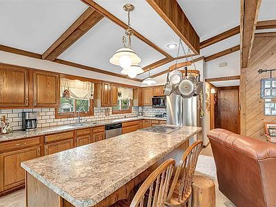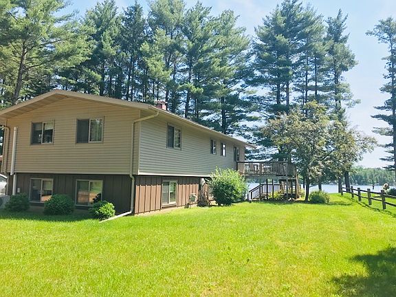 This 3 bedroom/2 full bath/2 car attached garage property has 125' of frontage on the crystal clear, 74 acre Full recreational Round Lake, Wild Rose. Incredible views of the lake from most rooms, the lower level has a walk out to the lake and the almost level lot with just a few steps to the dock. In the lower level there is a cozy Family room with a fireplace, the bedroom on this level could easily be made into 2 bedrooms, a full bath and the laundry room. Outside you have a great deck to enjoy early morning coffee or a cocktail in the evening. There is a nice storage shed for the water toys.