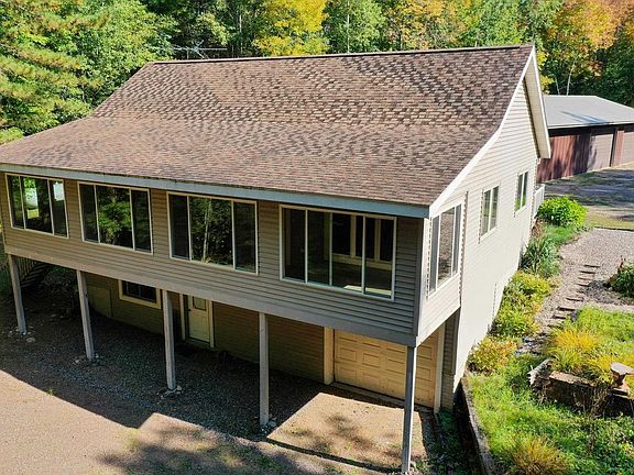 Secluded 2+ bedroom, 2 bath country home on +/-5.46 acres. Excellent location across the road from the public beach and boat landing at Sackett Lake. Open concept design with cathedral ceilings. Kitchen with island and breakfast bar. Dining room with patio doors to rear deck. Spacious three season room with nice views. 2 main floor bedrooms and main floor laundry. Walk-out basement with a family room, bathroom and heated garage. In-floor heat in the basement and main floor. 70x30 shed with a heated bonus room or workshop. Mound septic system. +/-5.46 acres with a nice mix of trees and rolling contour. The stove, refrigerator, microwave, window coverings and water softener are included in the sale price.