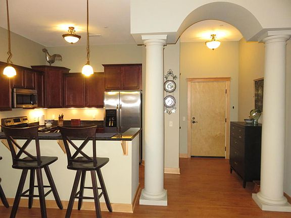 This stairless 1st floor unit features a 2nd underground garage space & a private deck with gate to the courtyard. Uniquely designed condo has a large living room w/gas FP adjoining the kitchen/dining area.Quality finishes & construction, Big MBR with Walk-in-closet & whirlpool bath, volume ceilings well soundproofed. Clubhouse is a restored landmark w/grand hall, kitchen, fireplaces, bar, & large lakeside deck viewing Florence Lake.Boathouse with large picnic deck, pontoon+fishing boats. Clean spring fed lake with good fishing+swimming.Walk to Okauchee shops, restaurants, and conveniences. Unique!