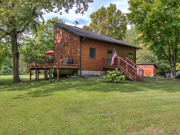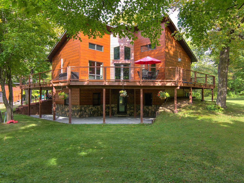 Nestled on a private 4+ acre lot just outside of Spooner, this pre-inspected 3 bed, 2.5 bath home epitomizes comfort & tranquility. Within walking distance to Potato Lake boat landing & adjacent to 100s of acres of Washburn County land, this is the perfect year round home, Up North retreat, or income producing rental property. The exterior of the home & garage is a testament to craftsmanship, featuring Norwegian hand hewn siding, stamped stonework & concrete, and large wrap-around deck. Inside, gorgeous hand-scraped, white-oak wood flooring seamlessly connect the open-concept kitchen, dining & living areas, while large windows flood the home with natural light, creating a warm & inviting space perfect for relaxation & entertainment. Additional highlights of this property include numerous outbuildings, featuring a workshop, garden shed, & new, oversized 2-car detached garage w bonus loft. Plenty of room to play in the large, landscaped yard with gardens, trails & an array of vegetation.