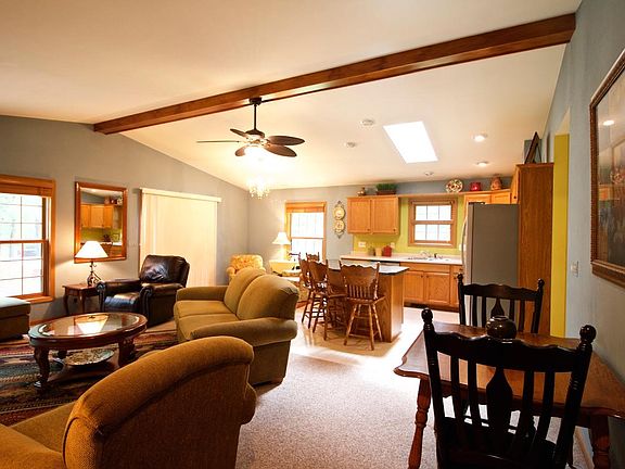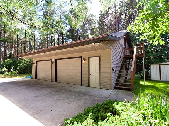 This 2 Bed (egress in base. to add a 3rd bedroom), 2 full bath home sits on 2 wooded lots (3 acres) is as move in ready! The Master bed/bath as well as laundry are all on the 1st floor. There is an outdoor hot tub to enjoy year round, a large screened in porch, but even better, an open porch with ceiling fans to keep you cool and bugs away. A huge deck for entertaining, as well as a paved fire pit area. The basement is clean and ready to be finished. Need more room? Above the garage could be an office or sleeping space if needed. Only a stones throw from Numerous lakes to enjoy as well.