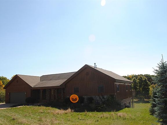 Love Nature 5 Acres A morning stroll on a woodland path, a watchful deer, an eagle soars this can be yours as the owner of this 5 bedroom, 3 1/2 bath beautiful walk-out ranch with its cedar and stone exterior. The home features large bright rooms, a floor to ceiling native stone wood burning fireplace and hardwood floors in the entertaining sized living room featuring vaulted ceilings and sliding glass doors leading to a huge deck overlooking beautiful rolling and wooded countryside. There is a real cooks kitchen open to the living area featuring gorgeous country views from every room. The large master bedroom has doors to the deck, wonderful views, 2 closets, and a lovely master bath with walk-in shower and whirlpool bath. Other amenities include first floor laundry, 2 car attached garage and huge lower level family room with sliding doors to patio area. This 5 acre private refuge is more than a new home for you this is a whole new outlook on life.