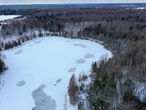 Rolling +/-67.46 acres with +/-1,250 feet of frontage on a semi-private glacial lake. Gated driveway access leading to a private setting with a metal pole shed, cabin and multiple building sites with lake views. Beautiful 32x72 metal shed with a 28x32 concrete floor with radiant heat tubing, 12x72 lean to, (2) 9x9 overhead doors, (1) 14x11 sliding door, 18x72 loft and 44x32 earth floor for heavy equipment. Cozy cabin with great room, full loft, chromed pot belly parlor stove, balcony, covered porch and composting bathroom. Excellent fishing for bass, perch, bluegills, crappies, northerns and trout on the 50-foot depth 6-acre glacial lake. Developed trail system leading to a private pond, natural springs and seasonal creeks. Old growth maples, oaks, hemlocks and cedars. Southern exposure on the hilly terrain with scenic views. Exceptional wildlife habitat and excellent hunting opportunities.,Located close to the National Forest and endless miles of public ATV/UTV routes and snowmobile trails. The lp tank for shed, unused generac 25kw propane generator and cabin wood stove are included in the sale price. New maintenance free siding on cabin.