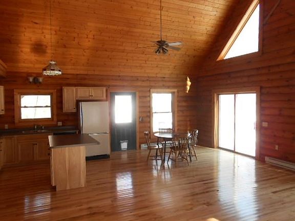 Custom Built Full Log home in the Crocker Hills area. This beautiful home has three floors with lots of windows facing to the south that let in lots of natural sun light. The main level has all wood floors, hickory cabinets, open concept living area plus two bedrooms and a full bath. There is a free standing wood burning stove/fireplace in the living room and up the stairs is the large loft area. The finished walkout lower level has patio doors, a huge family room, office and a full bath. There is a 24' x 36' garage/barn with horse stalls, a tack room and overhang shelter. Large wooded lot with easy access to lots of trails for snowmobiling, dog mushing or horse back riding. Very scenic and private!!