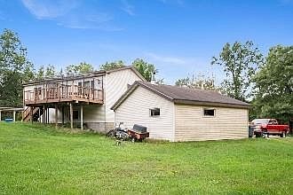 Large 2 BR 2BA home now for sale on 7 acres of wooded land. Nice back composite deck - with a couple of sheds for extra storage. Nice paved drive that pulls in and around making it easy to access the 2 car detached garage and the side house entrance to the main level/lower level of the home. This home needs some TLC but you are sure to build equity at this price.This could easily be converted back to a 3 bedroom home by adding a wall in the primary bedroom where the current owner removed for a larger room. Take a look today and see the value in this home and it's great location just north of the City of Mauston and south of the Castle Rock Lake area.
