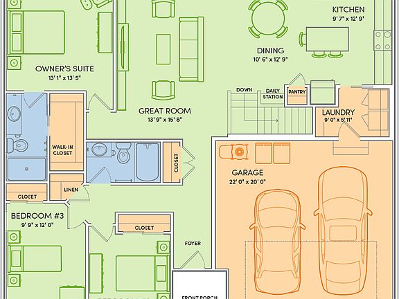 The Elaine was meant for easy living. Why wouldn't you have all of your desired amenities on a single floor, if you could do so? As you wake up from your owner's suite and enter the main living space, flip on the television in the great room, start a pot of coffee in the kitchen and then check on your laundry, all in one quick pass. Take pleasure in the carefree lifestyle offered by the smartly designed Elaine.All prices, promotions and specifications are subject to change at any time without notice based on the discretion of Veridian Homes. Amenities: Award-winning, high-performance home, Centrally-located Daily Station, Convenient kitchen pantry, Custom Auburn Ridge cabinetry, Energy expert certified, Exposed staircase to lower level, Large walk-in closet in owner's suite, Open living spaces, Smart Home+ technology