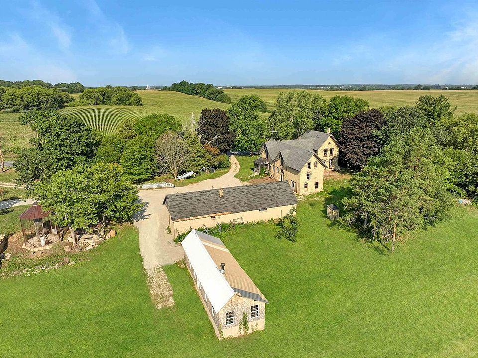 Be a part of WI history! Built in the mid-1800s, this Carpenter Gothic style home on 6.7 scenic acres was a sight to behold in its day. The home features unique architecture, floor-to-ceiling windows, & high ceilings. The house is mostly gutted leaving behind a blank canvas for your design ideas. There is potential for 4 BRs & 3-4 baths. The seller has done some work already like removing the plaster & lathe, clearing years of debris, taking down the collapsed barn & fixing up an old chicken coop. The property also has a silo, corn crib, & 70x26 detached garage w/cement floor that could hold up to 6 cars. This idyllic setting is located just a mile from the Glacial Drumlin bike trail & minutes from downtown Lake Mills with Rock Lake, shops, & access to I-94. Property being sold AS-IS.