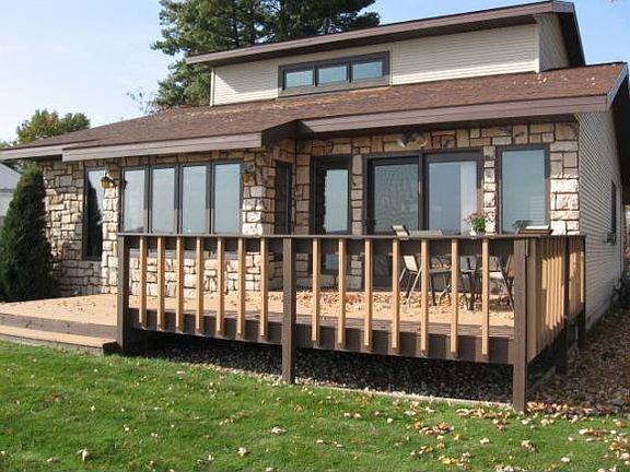 Beautiful Shawano Lake waterfront on the West shore on quiet dead end road stick built custom home. Maintenance free exterior, triple pane windows throughout, 24kw Generac backup generator, full concrete driveway, landscaped yard, sandy frontage, 2.5 car heated attached garage. Gas fireplace with open concept kitchen/dining/living room with great views of the lake.