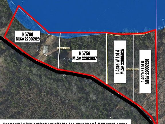 Your home away from home, situated on this peaceful, private, spring-fed, 17 acre lake in Medford! This Medford waterfront property in its entirety is 4.14 acres, this includes all four addresses (being sold separately) N5760 MLS#22006929, N5756 MLS#22102097, 1 Acre W Lot 4 MLS#22006926, and 1 Acre E Lot 4 MLS#22006928. The property in its entirety is available to purchase as a whole. The two 1 acre lots are also available to purchase as a 2 acre parcel and are combined currently. With good hunting & fishing, this is the chance to enjoy your very own piece of the great outdoors! This cozy one bedroom, one bathroom historic vintage cottage has all the makings for a perfect get-away retreat! The historic vintage cottage has a 3 year old shingled roof, and shares a new holding tank with the neighboring home along with sharing the well with the neighboring home. There is a historic vintage cottage, large shed that needs TLC and a small shed that needs TLC on the property. Property is being sold AS-IS.The property is not surveyed off yet from the neighboring home and would need to be done. Mature trees and mixed hardwood surround the home and are prevalent throughout the property. Fire protection and snow removal is provided by the village. Enjoy the privacy of the spring-fed lake with no public access; 53' at its deepest. Additionally, there is an available neighboring fishing lake with public access, allowing for motor boats and jet skies. The Medford area has much to offer! As the county seat for Taylor county there are many events held in town! There are restaurants, grocery stores, and many recreation activities in the area! The Pine Line Trail is a 26 mile long biking and walking path for you to enjoy. There are also many sports opportunities for kids to enjoy, from skateboarding, to bowling, tennis, and basketball. Also in town is the Simek Center for local hockey and curling club. In the summer, one can enjoy the farmers markets in town, as well as many local Amish produce stands, for fresh locally grown food. Just 10 miles northwest of Medford is the Chequamegon - Nicolet National Forest, which has over 1.5 million acres to enjoy, including part of the Ice Age Trail. In the winter, over 300 miles of trails are available for cross country skiing!
